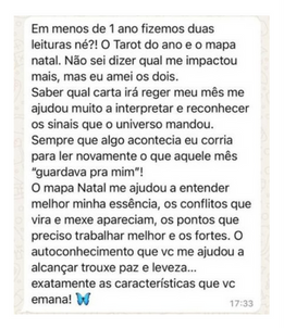 Durante a leitura do meu mapa, ele me revelou algo poderoso: que eu passaria por um período de incertezas, mas que era um momento perfeito para explorar tudo que me interessasse. Ele também mencionou que esse seria um período excelente para engravidar, caso eu desejasse. O curioso é que meu marido e eu já estávamos conversando sobre isso.